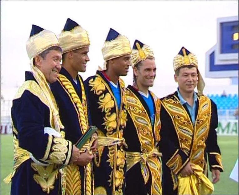 Ўша учрашувда Ривалдо Ўзбекистондаги биринчи голларини урганди. Видеода бразилиялик машҳур юлдуз олдида турган болакайга эътибор қилинг.