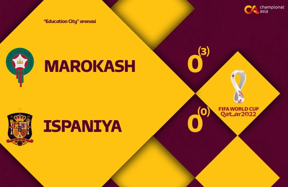 - JCH-2022ning nimchorak finalidan o'rin olgan Marokash - Ispaniya uchrashuvining matnli translyatsiyasi ushbu sahifada olib boriladi.