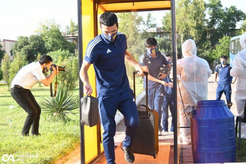Mezbonlar OKMK sport majmuasiga soat 17:50da yetib keldi. "Nasaf" esa biroz kechroq, yani 18:40da stadionga yetib keldi.
