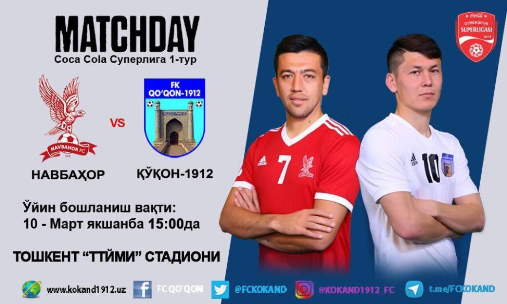 Тошкентдаги ТТЙМИ стадионида "Навбаҳор" ва "Қўқон-1912" ўртасидаги водий дербиси ўтказилади.
