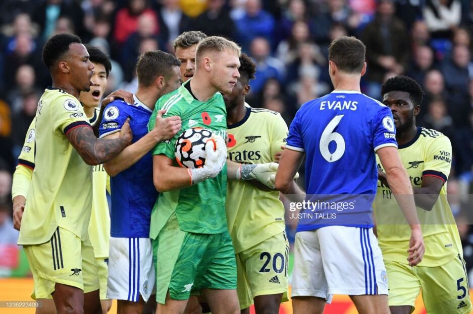 42. "Arsenal" jarima maydonchasi oldida standart. "Lester" hisobni qisqartirishi mumkin.