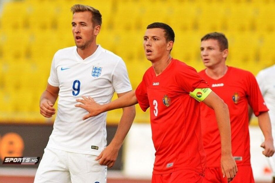 foto: Foksha Moldova yoshlar terma jamoasi safida Angliya yoshlar terma jamoasi hujumchisi Garri Keynni qo'riqlamoqda.