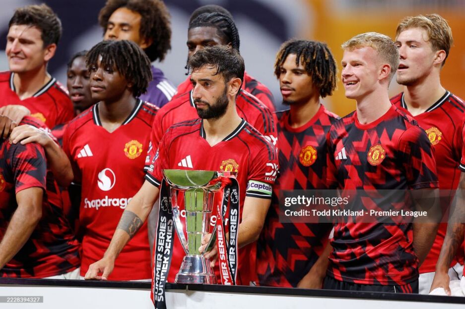 Manchester Yunayted - Bayindir, Yoro (Maguayr, 57), De Ligt (Frederikson, 88), Shou (Heven, 57), Dalot, Diallo, Ugarte (Kazemiro, 72), Maynu (Maunt, 57), Fernandesh, Mbeumo (Dorgu, 46), Kunya (Hoylund, 72).