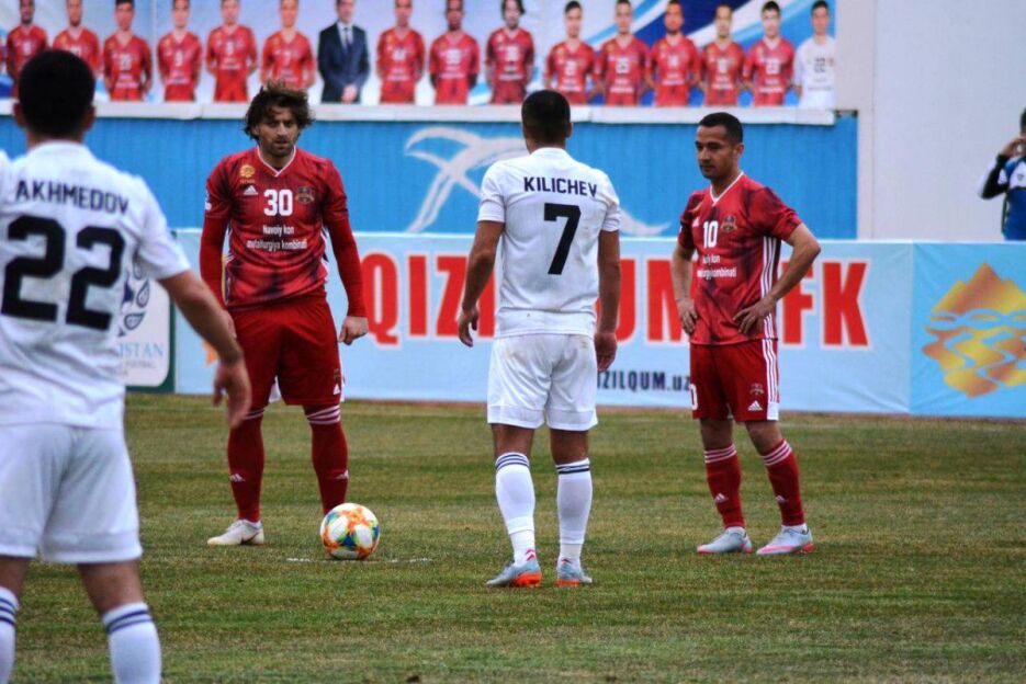 30. Рўзимбой Аҳмедовга нисбатан ишлатилган қўполлик учун белгиланган жарима тўпини Ойбек Қиличев ажойиб тарзда дарвозага жойлаб қўйди - 0:1.