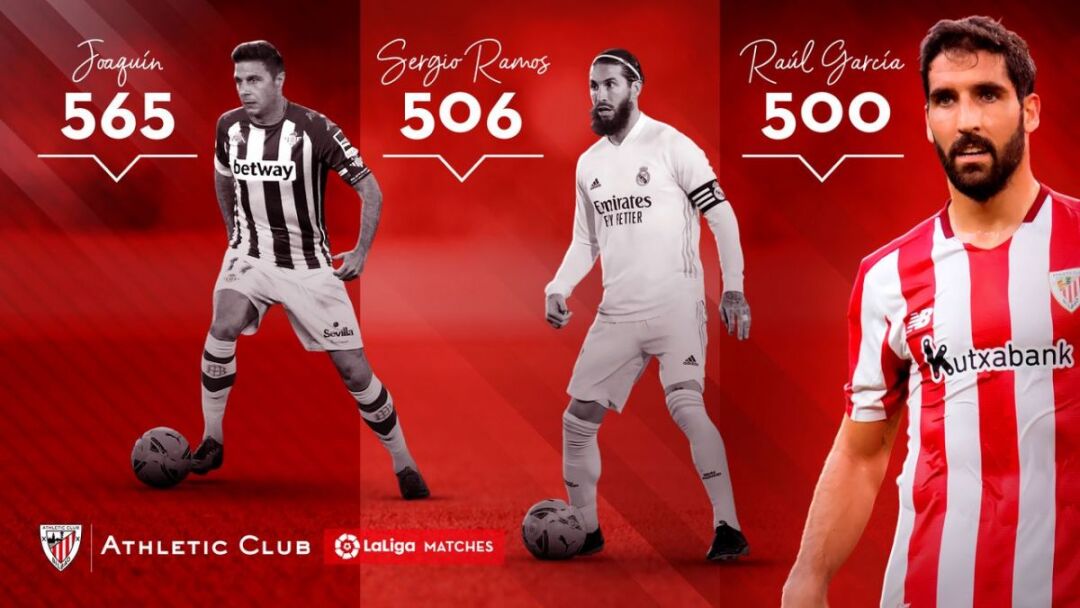 Ispaniya chempionatidagi hozirgi o'yinchilardan faqatgina Xoakin (565) va Serxio Ramos (506) Raul Garsiyadan ko'p o'yin o'tkazishgan.