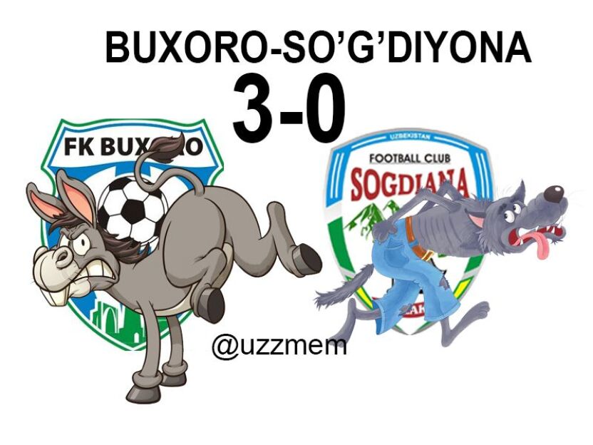 Navbatdagi mem esa aynan "Buxoro"ning eshagi bilan bog'liq bo'ldi. Buxoro klubi "So'g'diyona"ni 3:0 hisobida taslim etganidan so'ng, eshak Jizzax klubining yangi logotipidagi bo'rini do'pposlagani aks etgan mem namoyish etildi.