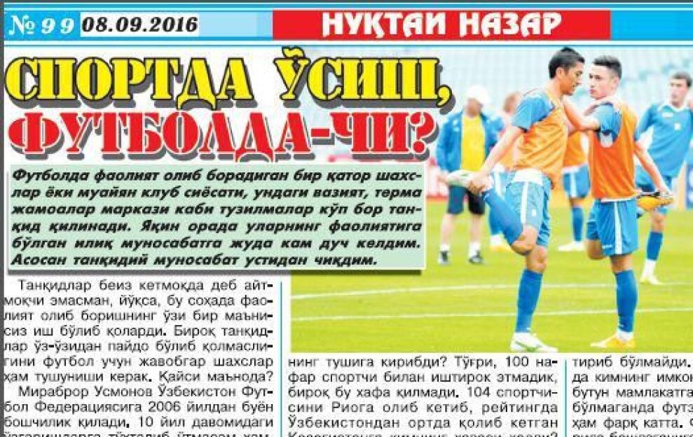 Tanqidlar beiz ketmoqda deb aytmoqchi emasman, yo'qsa bu sohada faoliyat olib borishning o'zi bir manisiz ish bo'lib qolardi. Biroq tanqidlar o'z-o'zidan paydo bo'lib qolmasligini futbol uchun javobgar shaxslar ham tushunishi kerak. Qaysi manoda?