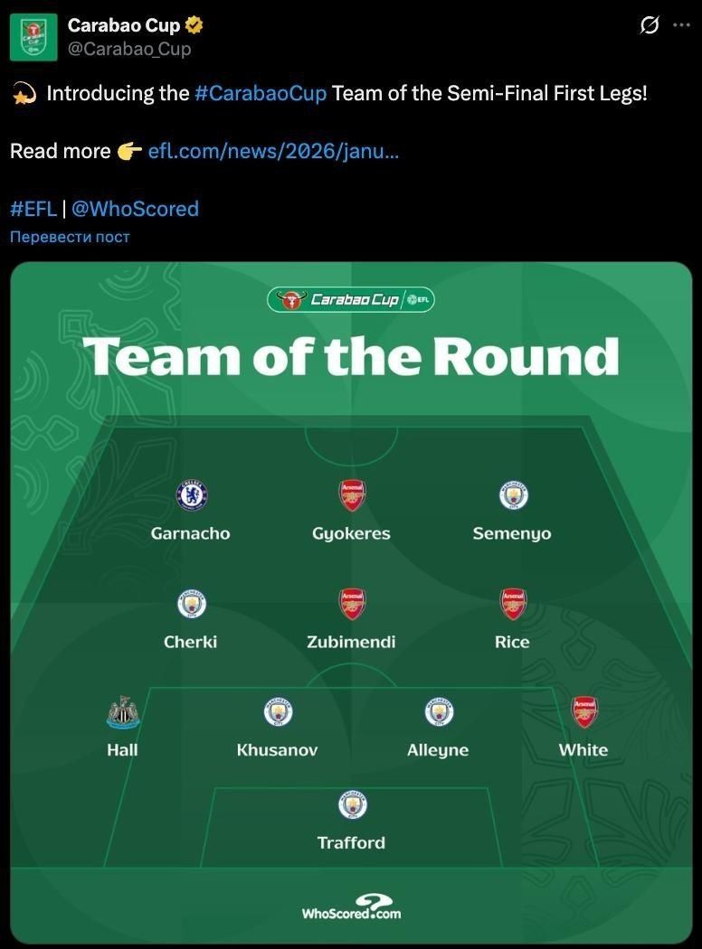 Abduqodir Husanov Angliya Liga kubogining 1/2 final birinchi uchrashuvlari ramziy jamoasidan joy oldi.
