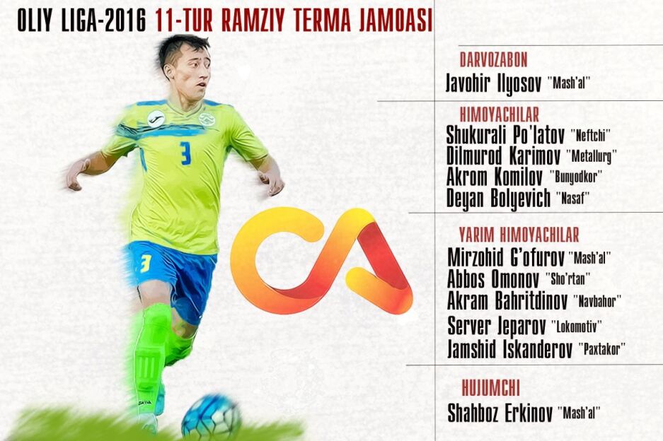 "Машъал" ҳужумчиси Шаҳбоз Эркинов 1-турда "Қизилқум" билан ўйинда дублга эришганидан сўнг умуман гол ура олмади. 11-турда яна ўзига келган ҳужумчи "Обод" дарвозасига 2та тўп киритди ва ҳақли равишда рамзий терма жамоадан ўрин олди.