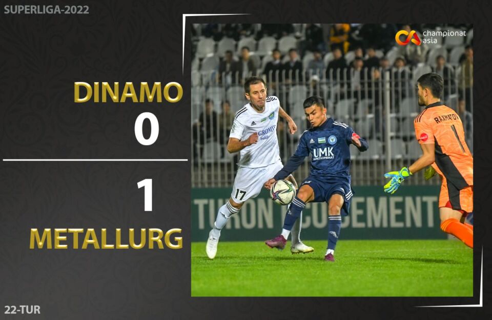 "Металлург": 12.Александр Лобанов, 4.Керим Палич (19.Эргаш Исмоилов, 90+7), 9.Забиҳилло Ўринбоев (16.Жасур Холтўраев, 86), 10.Бектемир Абдуманнонов (30.Иброҳим Ибрагимов, 53), 14.Аброрбек Тошқўзиев, 18.Анвар Ғофуров, 22.Шаҳзодбек Ғофурбеков (6.Худойшукур Сатторов, 86), 27.Ихтиёр Тошпўлатов, 80.Фарруҳ Иброҳимов, 94.Фарҳод Бекмуротов, 97.Муҳаммадали Алиқулов.