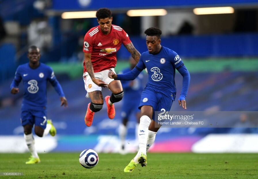 44. "Юнайтед"да ажойиб вазият юзага келганди. Рэшфорд тўпни тўхтатганидан кейин Канте тўпни бурчакка чиқариб юборди.