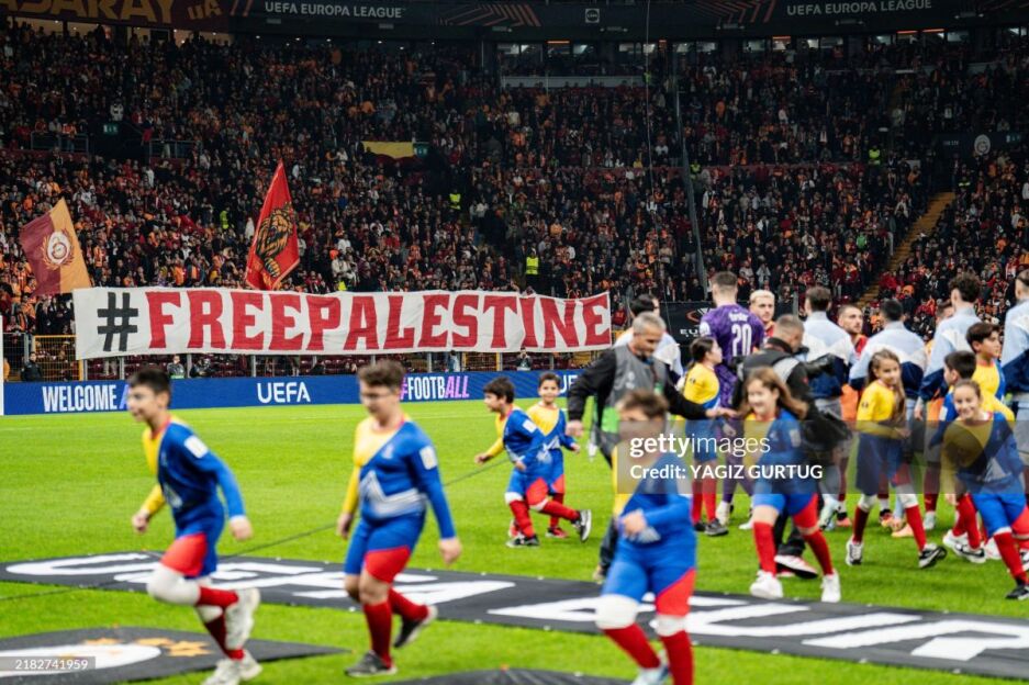 Avvalroq Turkiyaning boshqa bir klubi "Galatasaroy" muxlislari Yevropa Ligasi o'yinida Falastin bilan birdamligini ko'rsatish maqsadida "Mustaqil Falastin", "Falastin genocidi" va "G'azo bolalari yashasin" deb yozilgan ulkan bannerlarni darvoza ortiga osib qo'ygan edi.