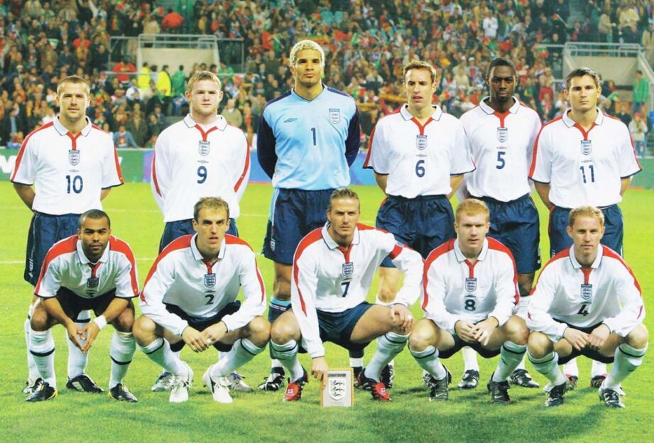 Yuqoridagilar: Maykl Ouen, Ueyn Runi, Devid Jeyms, Garet Sautgeyt, Ledli King, Frenk Lempard