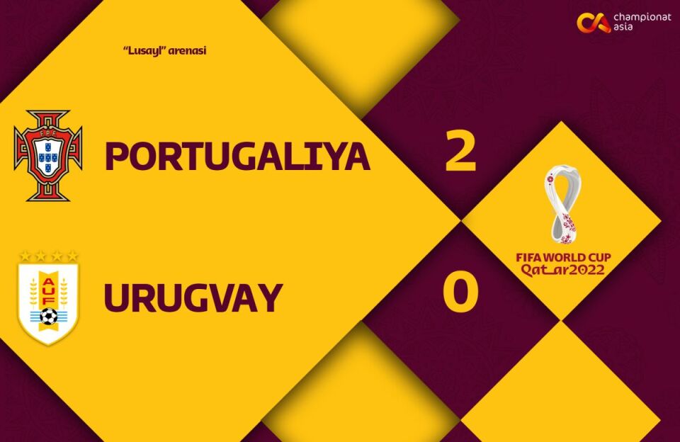 Огоҳлантиришлар: Родриго Бентанкур 6', Рубен Невеш 38', Матиас Оливера 44', Жуан Феликс 77', Рубен Диаш 89'