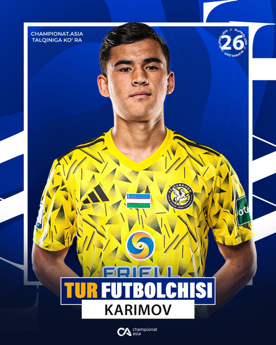 Championat.asia сайти талқинига кўра, 26-турнинг энг яхши футболчиси – Беҳруз Каримов ("Сурхон")