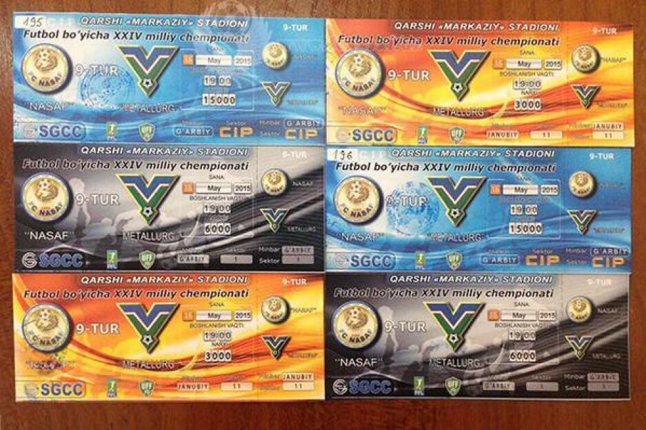 Бугундан бошлаб ушбу учрашув учун чиқарилган чипталар сотувга чиқарилади. Шу ўринда мухлисларга эслатма: “Насаф” жамоаси иштирокида уй учрашувларига чиқарилган чипталарни фақат стадион яқинида жойлашган чиптахоналарадан сотиб олишларини сўрардик. Сабаби жамоамизнинг бундан аввал Қаршида ўтган учрашуви (“Насаф” – “Ал Аҳли”)да айрим фуқаролар томонидан сохта чипталар, тайёрланиб сотувга чиқарилган. Ушбу фуқароларга ҳуқуқни муҳофаза қилувчи органлар томонидан белгиланган тартибда маъмурий жазо қўлланилди.