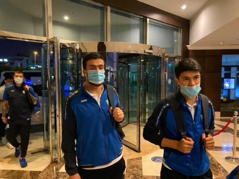 Delegaciya a'zolari aeroportda pasport nazoratidan avval koronavirusga test topshirdi. Shundan so'ng milliy terma jamoa vakillari “Al-Bustan Rotana” mehmonxonasiga joylashdi.