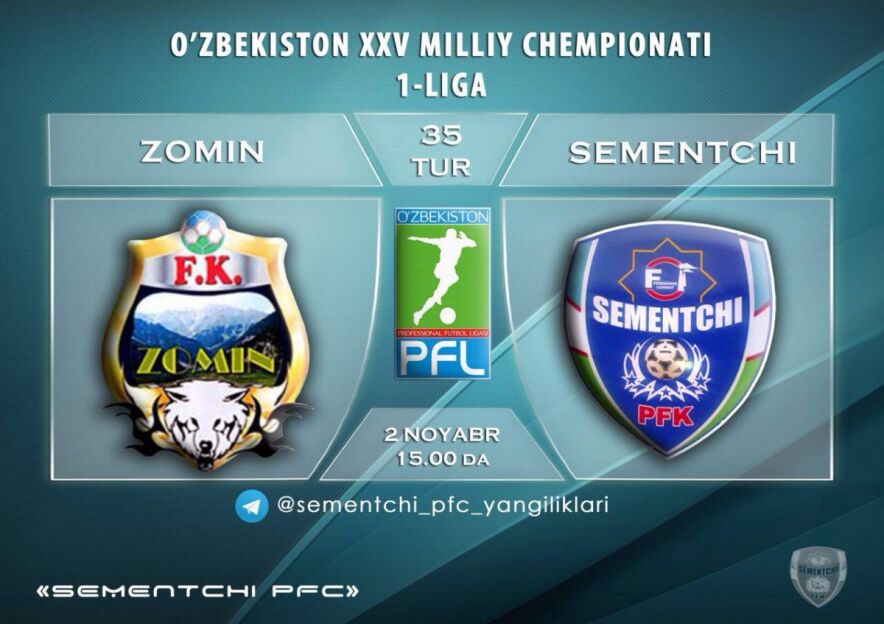 Бунда Зоминнинг “Зомин” жамоаси Қувасой шахрининг “Цементчи” жамоасини “Зомин” марказий ўйингоҳида қабул қилади.