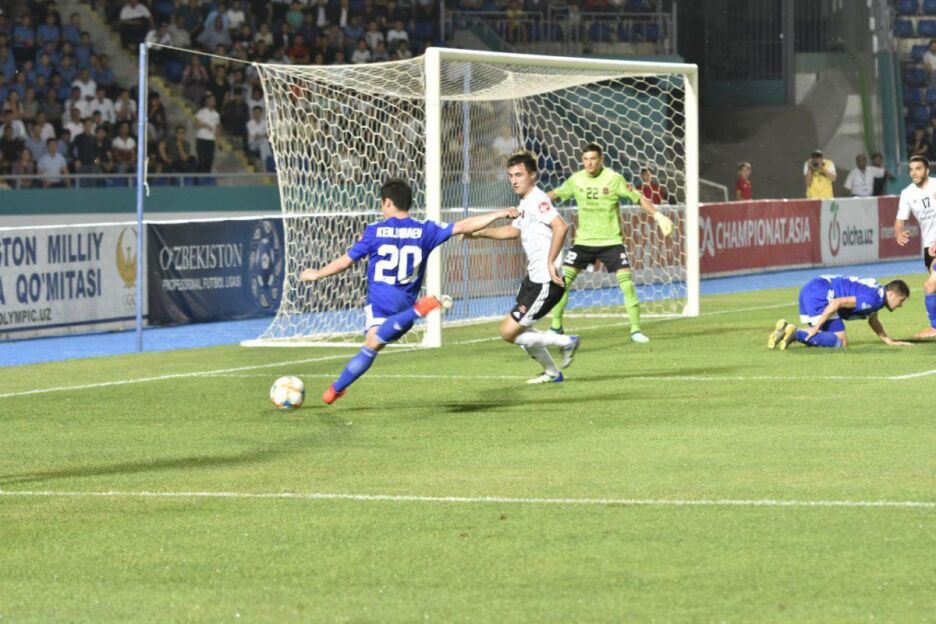 42-дақиқада Мурод Бобожонов чап қанотдан бир ўзи жарима майдончасига кириб борди ва тўпни Григалашвилига узатди. Элгужанинг яқин масофадан йўллаган зарбасини рақиб ҳимоячилари бартараф этишди.