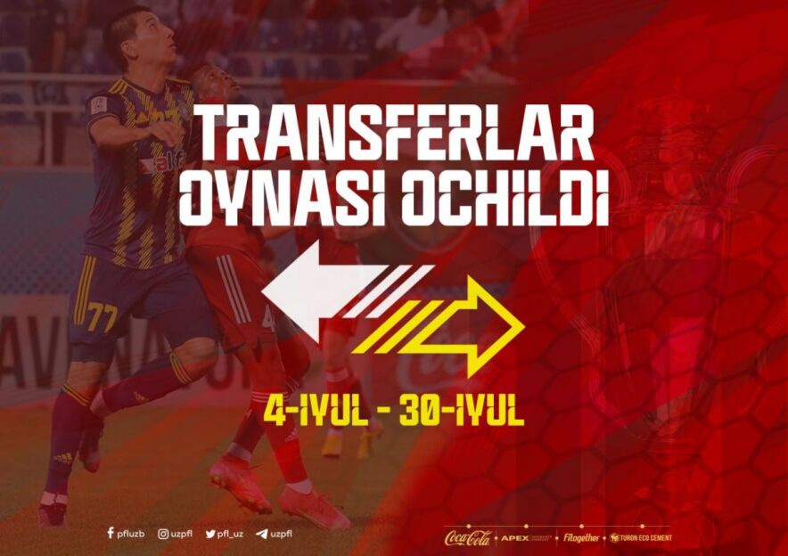 30 iyul, shanba kunigacha ochiq bo'ladigan "oyna"dan bir nechta futbolchining "kirishi" kutilmoqda. Ma'lum bo'lishicha, 4-30 iyul oralig'idagi transfer oynasi faqat Superliga klublari uchun emas, balki Proliga va Birinchi liga, shuningdek futzal va ayollar jamoalari uchun ham amalda bo'ladi. Bu juda yaxshi va to'g'ri o'ylangan qadam. Hammaga bir xil imkoniyat berilyapti.