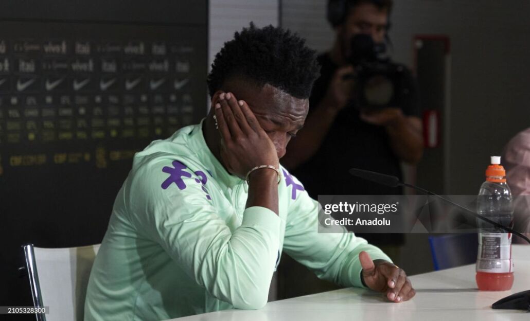 Braziliya terma jamoasi a'zosi Vinisius Junior Ispaniya - Braziliya o'yinidan oldin tashkil etilgan matbuot anjumanida irqchilik borasida berilgan savolga javob berish jarayonida yig'lab yubordi.